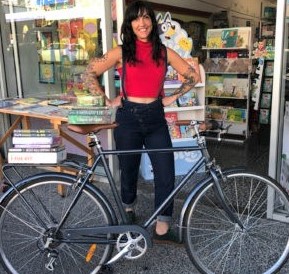 Across town, Avid Reader bookshop, where I launched The Chalkies, has introduced a free local bicycle delivery service for the surrounding area, and promises same day delivery. Apparently it’s keeping Rachel (pictured) fit and happy. Win-win.
